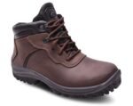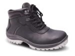 Botín de seguridad fabricado con cuero flor, suela bi-densidad resistente a hidrocarburos, abrasión y dieléctrica. Con puntera de acero que brinda protección certificada contra impactos y plantilla Ortholie con tratamiento antimicótico.