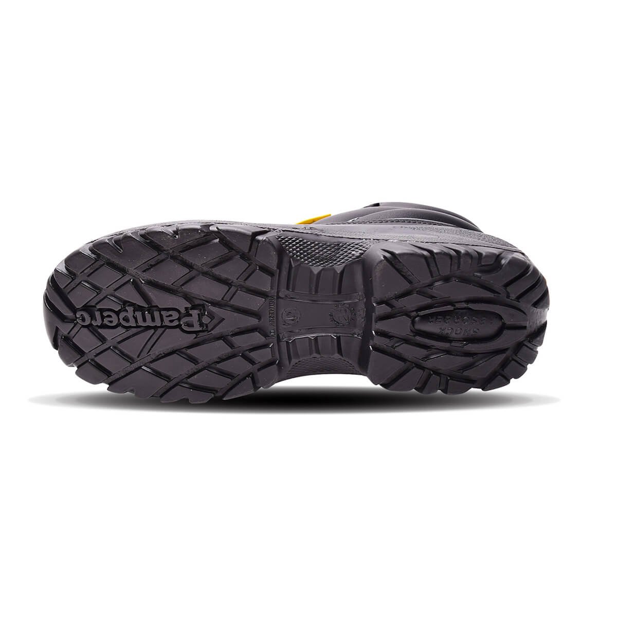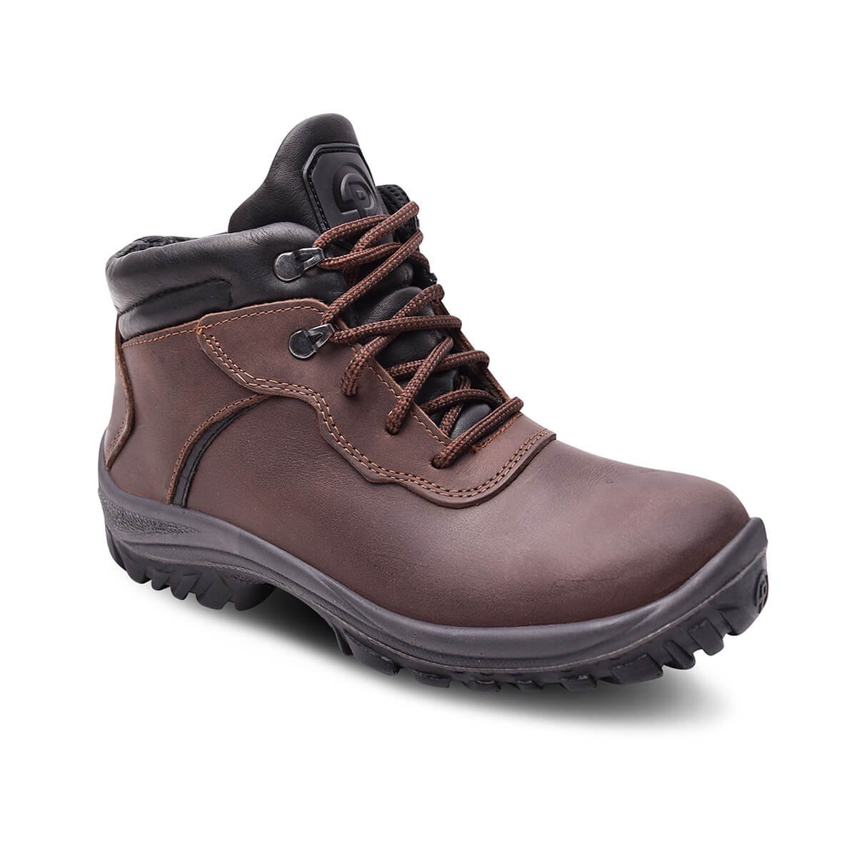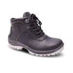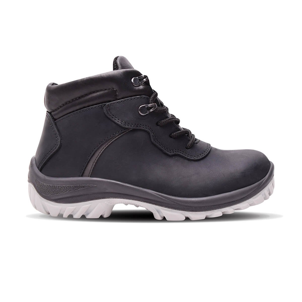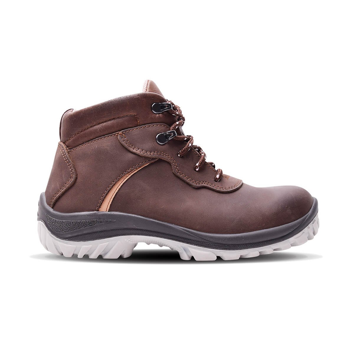 Botín de seguridad fabricado con cuero flor, suela bi-densidad resistente a hidrocarburos, abrasión y dieléctrica. Con puntera de acero que brinda protección certificada contra impactos y plantilla Ortholie con tratamiento antimicótico.