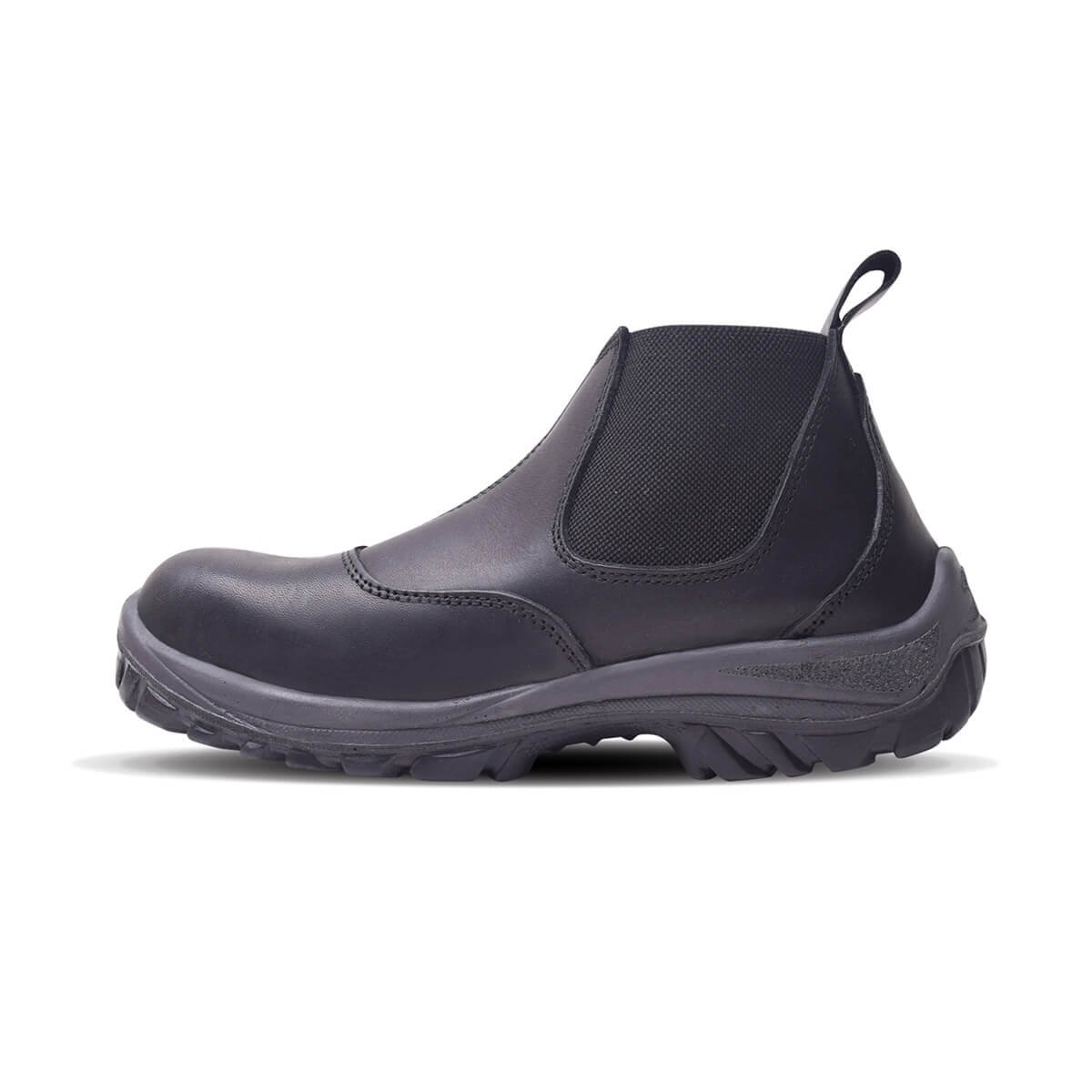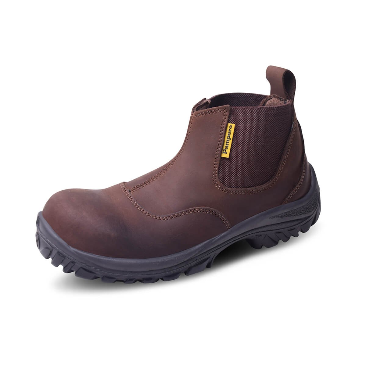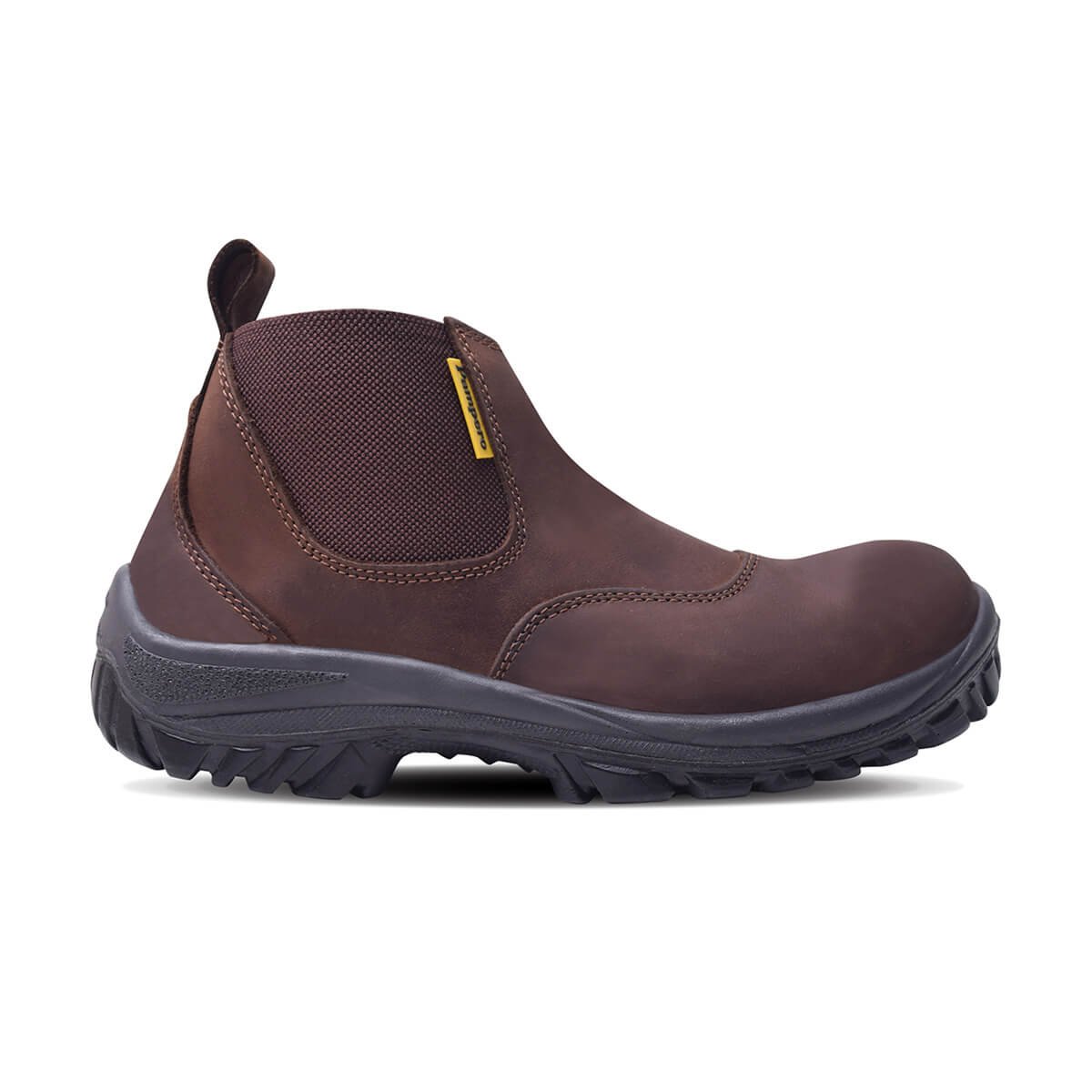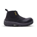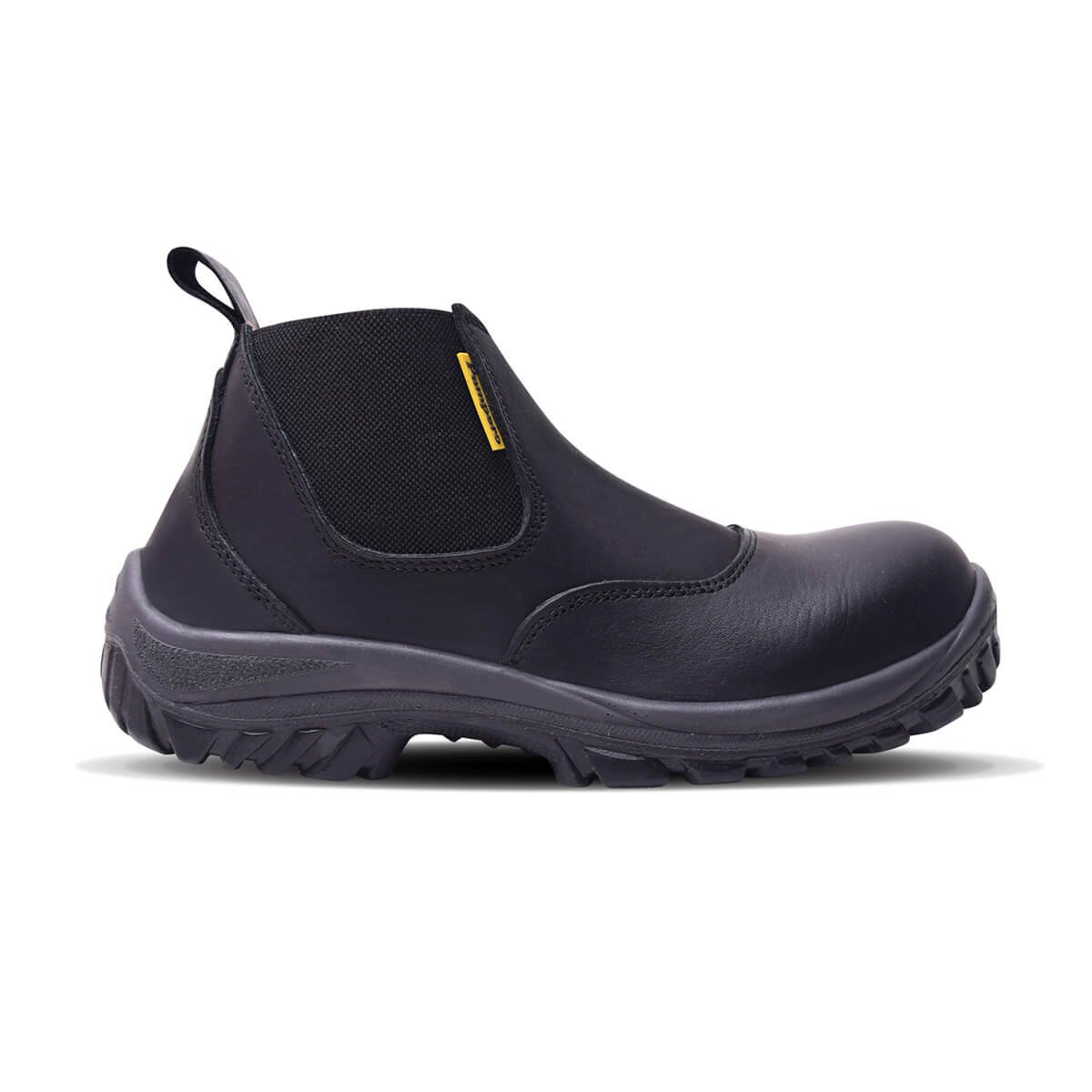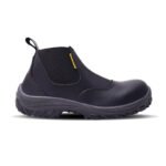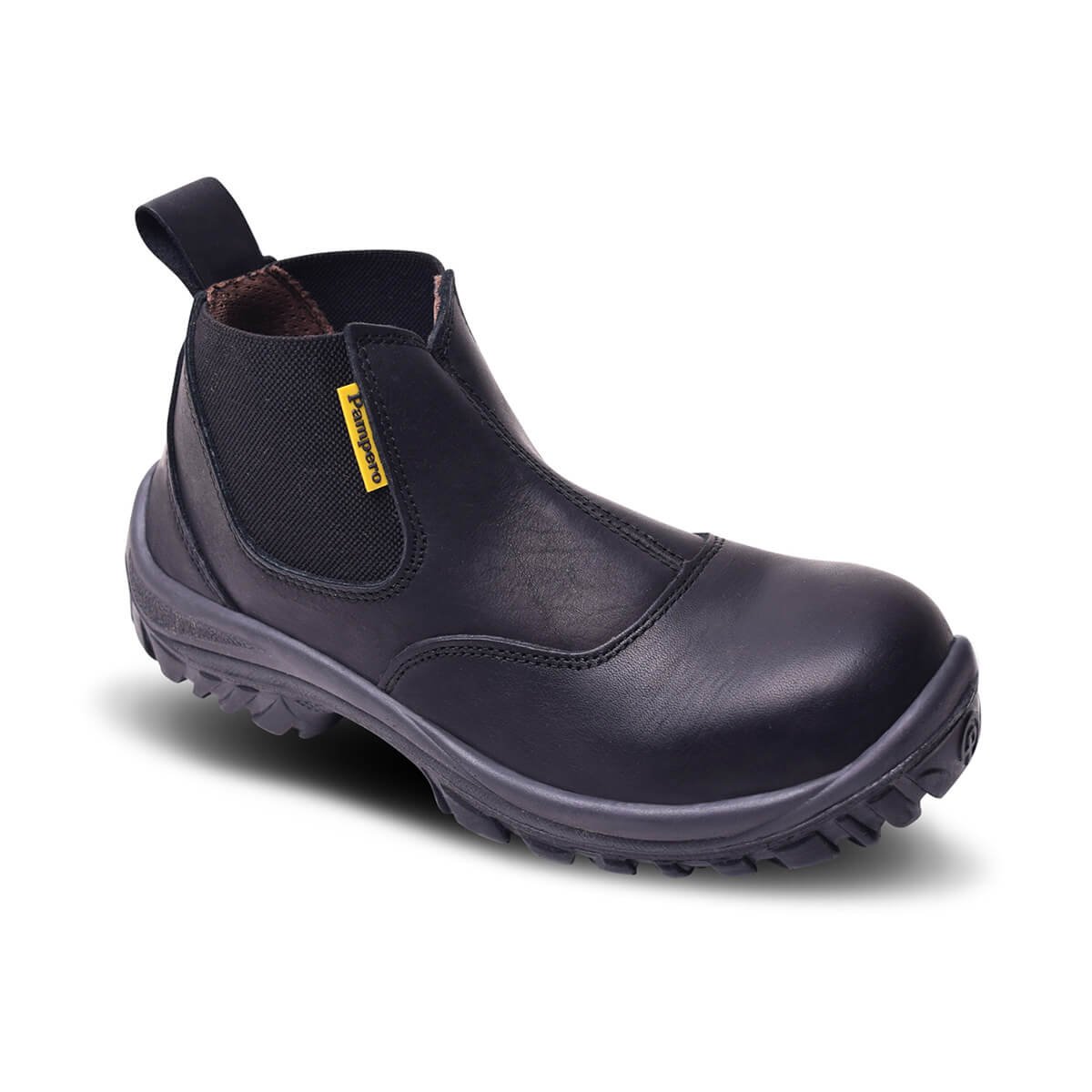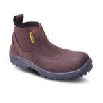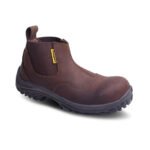 Botín de seguridad fabricado con cuero flor, suela bi-densidad resistente a hidrocarburos, abrasión y dieléctrica. Con puntera de acero que brinda protección certificada contra impactos y plantilla Ortholie con tratamiento antimicótico.