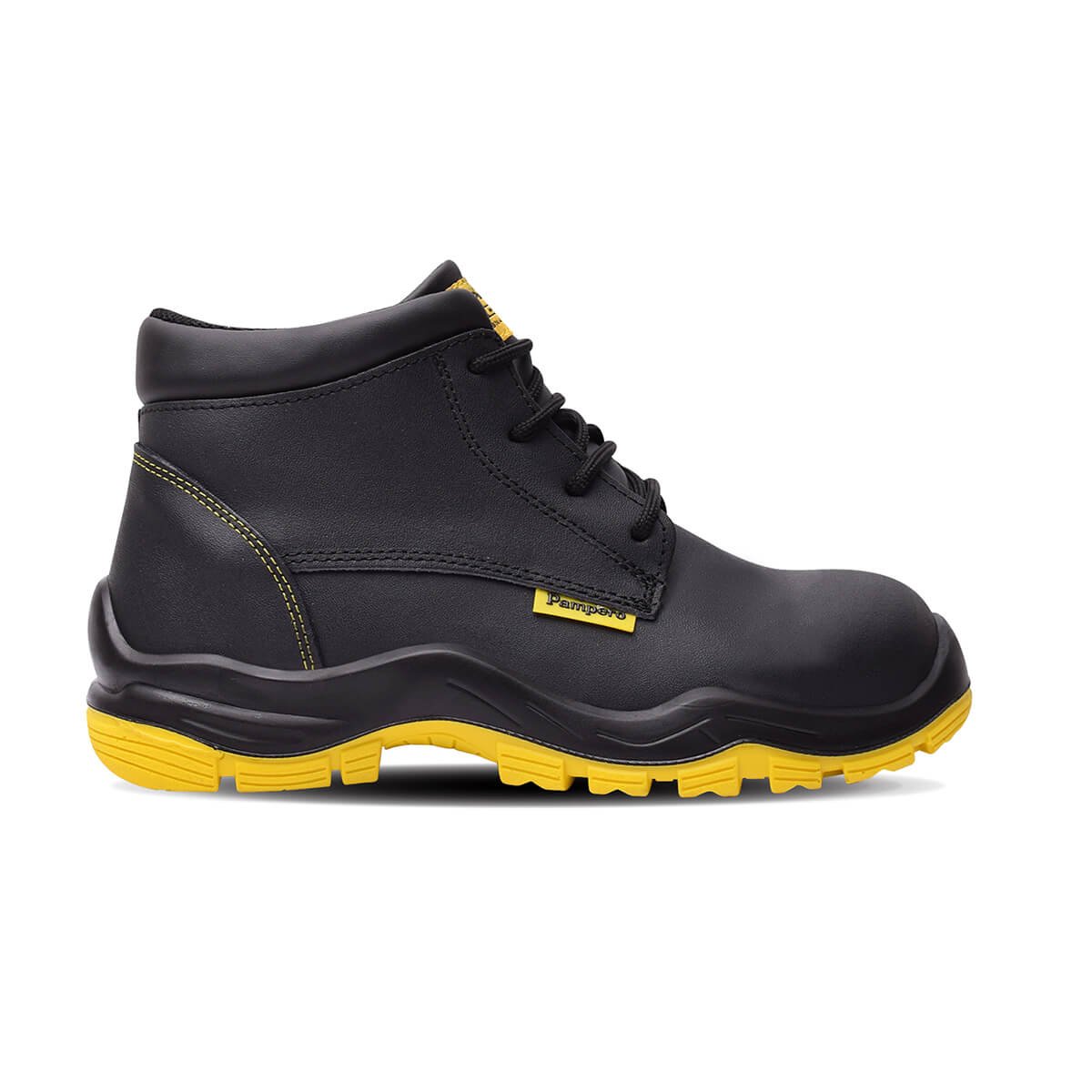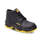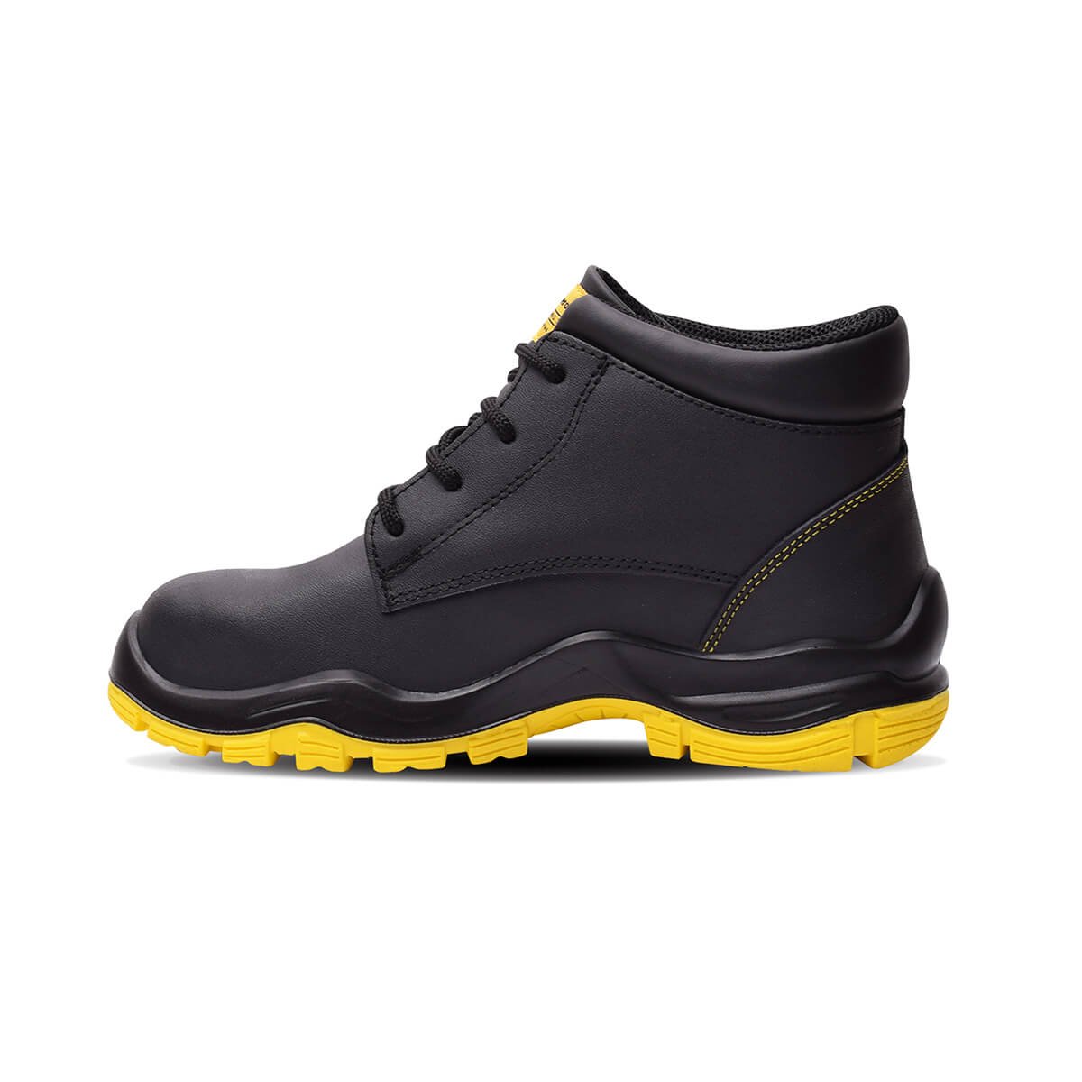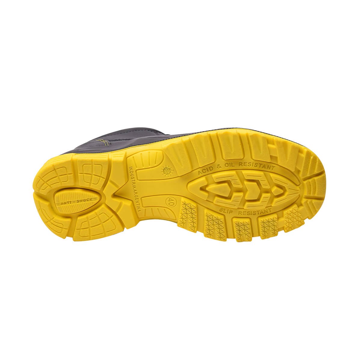 Botín de seguridad fabricado con cuero descarne, suela mono-densidad resistente a hodrocarburos, abrasión y dieléctrica. Con puntera de acero que brinda protección certificada contra impactos y plantilla de EVA 4mm con tratamiento antimicótico. Posee ojalillos metálicos con tratamiento anticorrosivo.
